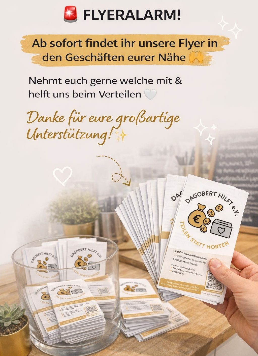 Es braucht nicht viel, um die Welt ein kleines Stück besser zu machen. Mit Dagobert - hilft e.V. kommt jeder Euro genau dort an, wo er gebraucht wird. Mir macht es eine große Freude diesen Verein zu unterstützen. #teilenstatthorten💛